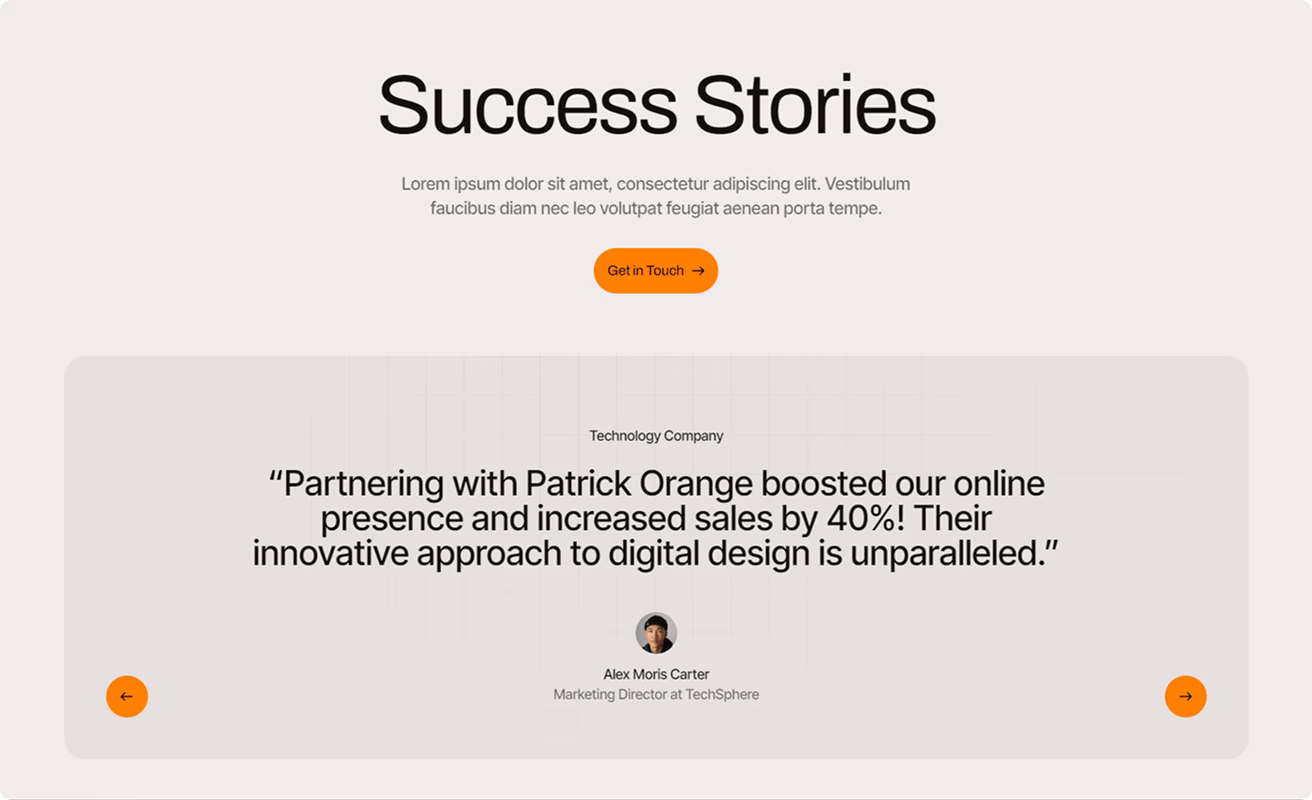 Orange includes smooth, subtle animations that bring your portfolio to life. Impress visitors with interactive elements that highlight your creativity and attention to detail.