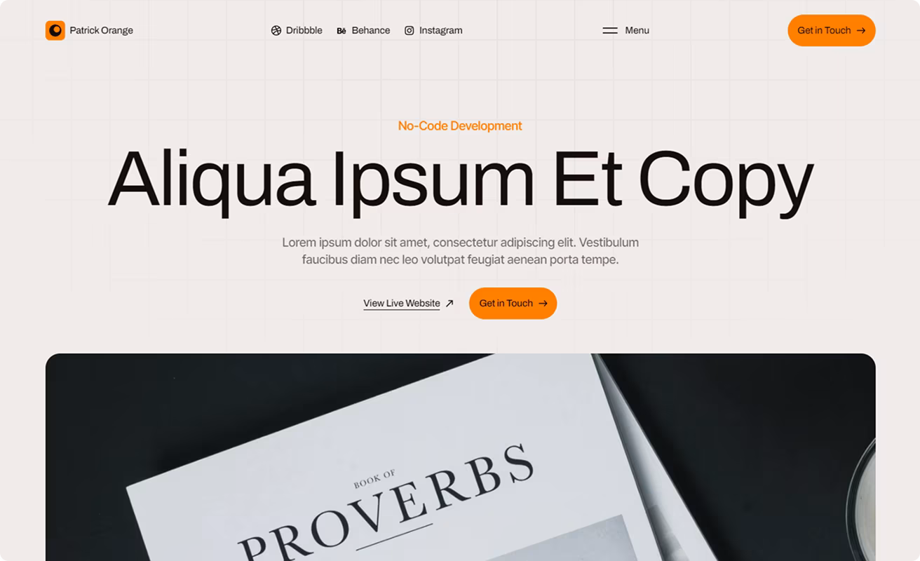 Discover our minimalist, clean, and elegant Webflow personal portfolio template - Orange.
